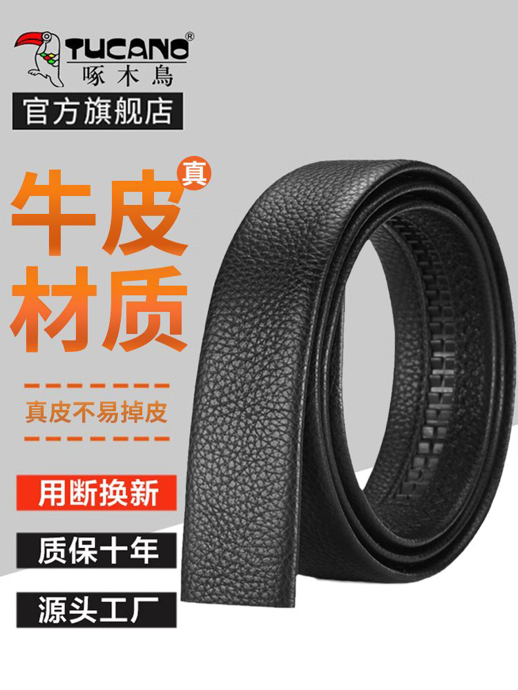 Woodpecker Genuine Leather Belt for Men, Cowhide Without Buckle, Automatic Buckle Belt, Buckleless Casual Belt, Men's Trendy Belt