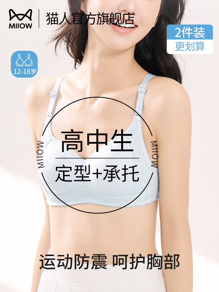 Cat Girl Underwear for High School Students in the Second and Third Stages of Puberty, Sports Shock-Proof, Wire-Free Shaping Bra