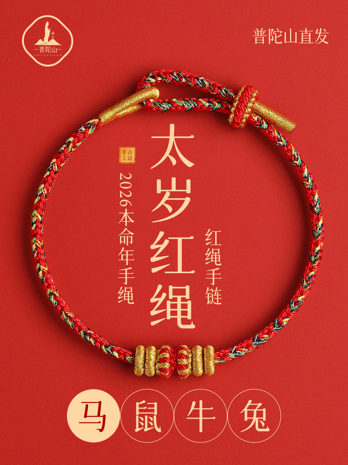 Putuo Mountain 2026 Zodiac Year Red String Bracelet for the Year of the Horse, Handmade Red String Bracelet, Red String Gift