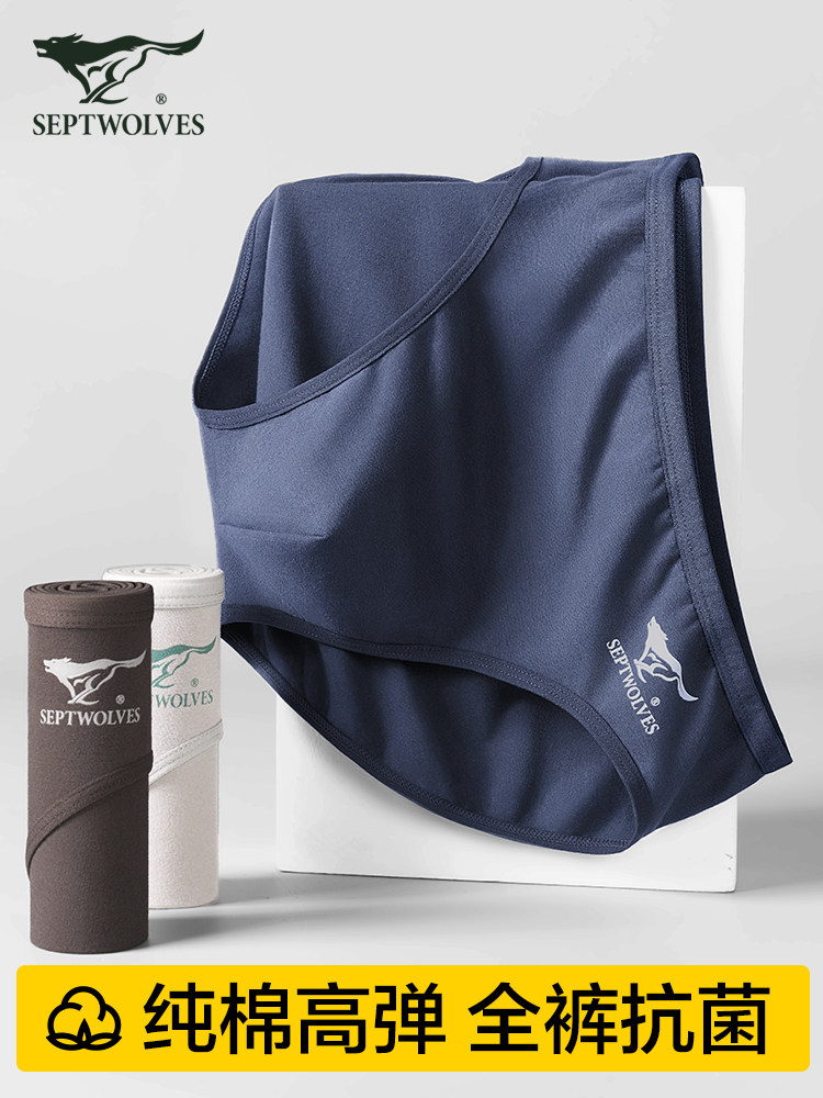Septwolves Men's Underwear, Boys' Briefs, Pure Cotton Antibacterial Shorts, All-Cotton Shorts, Sports Large Size Briefs, Men's Style