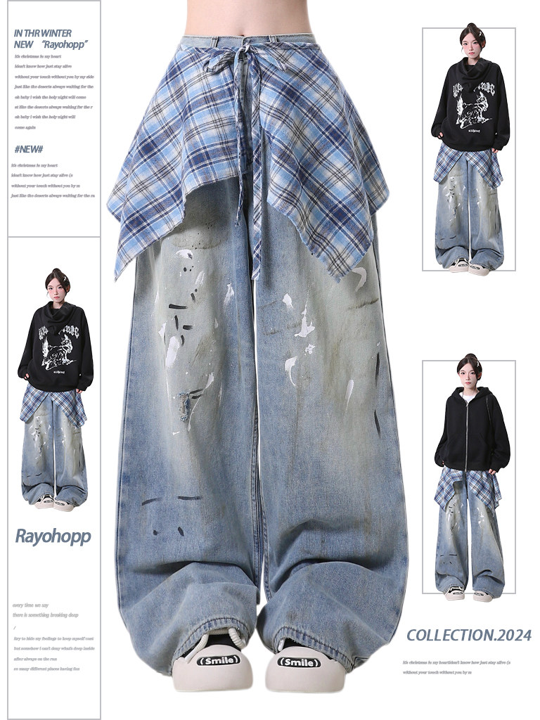 Rayohopp Women's Fleece-Lined Jeans, Autumn and Winter Wide-Leg Pants, Loose Bf Style, Casual Long Pants, Jazz Street Dance Pants