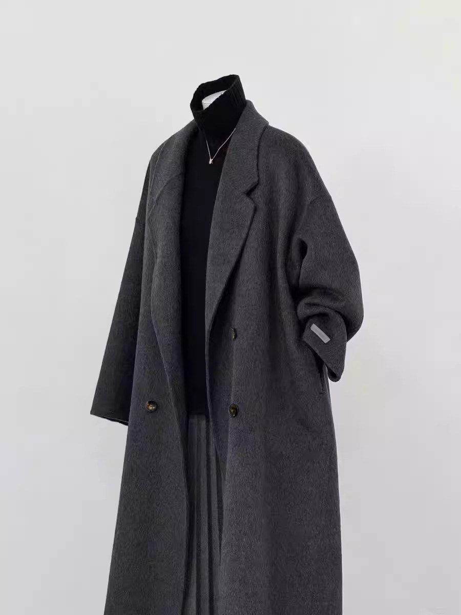 Double-Sided Cashmere Outwear for Women 2025 Autumn and Winter Black and Gray New Korean Style Loose Mid-Length Classy Woolen Outwear