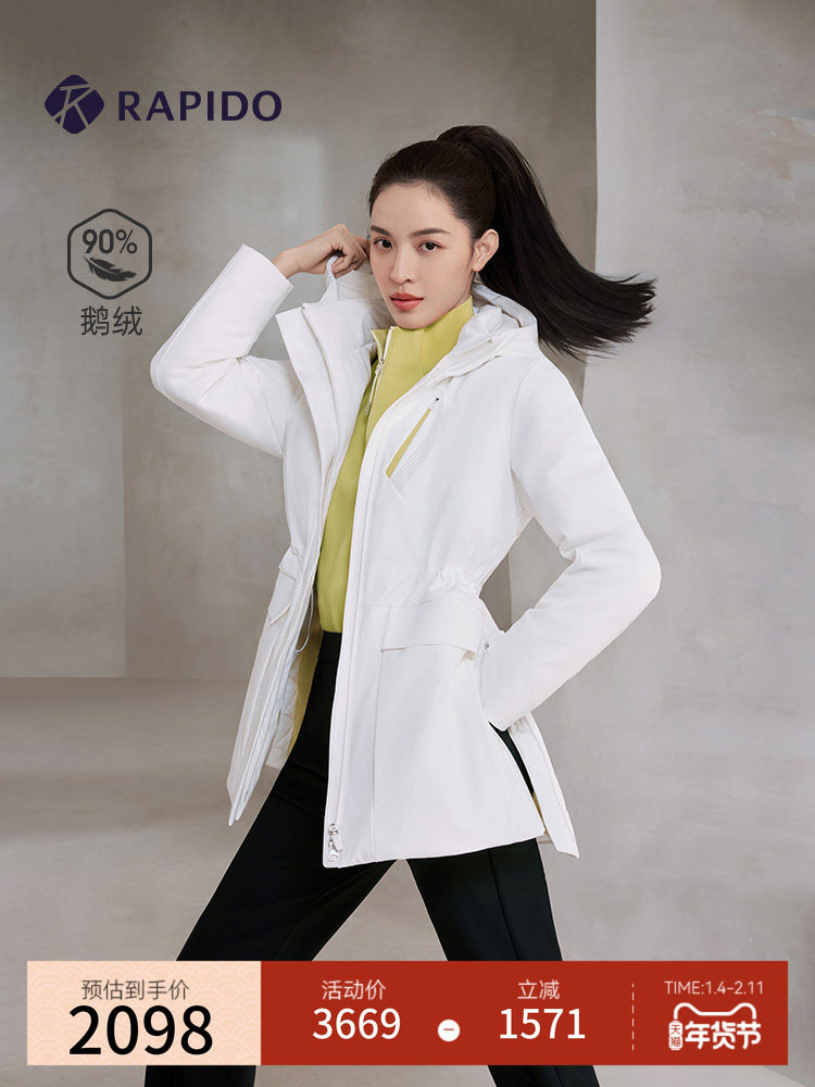 【New Product】Rapido 2025 Winter Women's Sports Casual Mid-Length down Jacket 90% Goose down