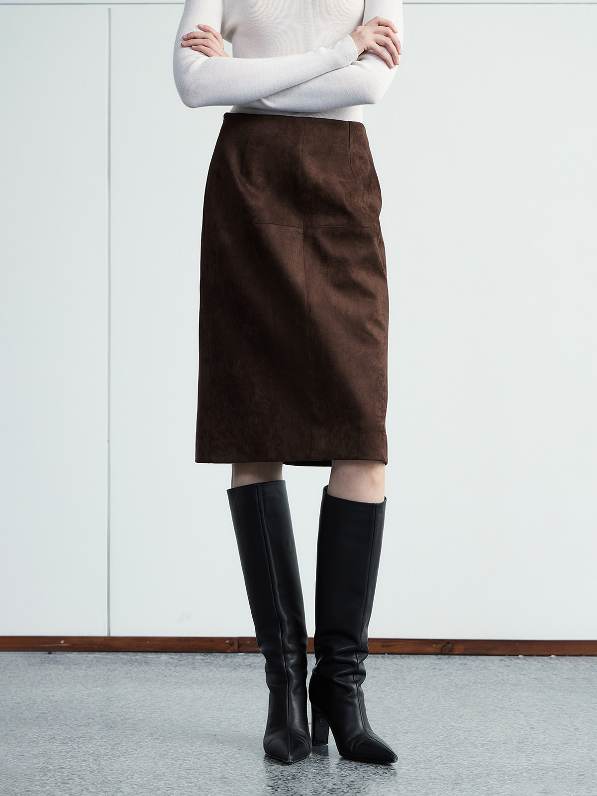 Thornsaura Commuting Simple Versatile Straight Slit Faux Suede Autumn and Winter Short Skirt for Women