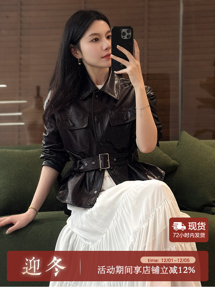 Jcaesar down Jacket Distressed Fur Collar Short down Jacket with Faded Texture Leather 90% White Duck down
