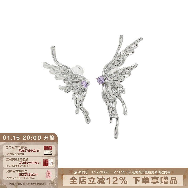 [Same Style as Huang Xing] Sumiyaki Original Biochemical Butterfly Earrings Liquid Metal Style Ear Clips Asymmetrical Earrings