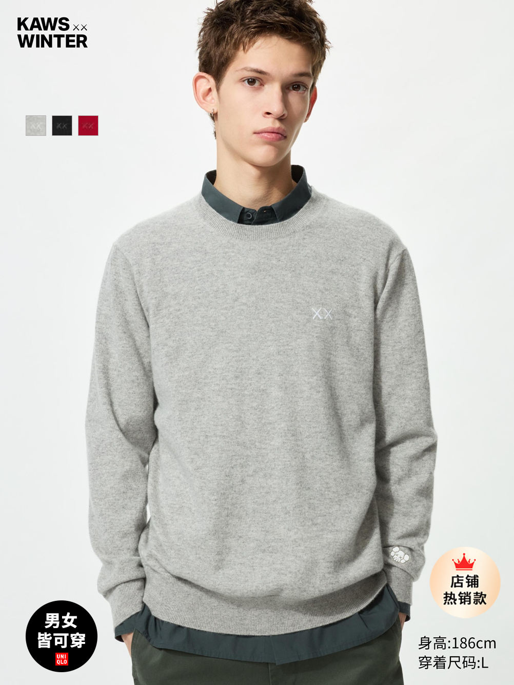 Uniqlo Men's and Women's Clothing Kaws Cashmere Round Neck Knitwear Long-Sleeved Sweater 25 Autumn and Winter New Style 485272