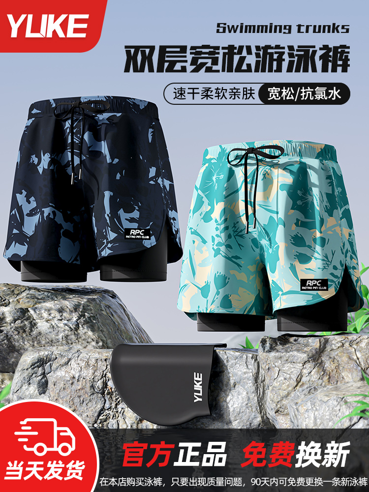361 Sun Yang Style Swimming Trunks Men's Swim Trunks Swim Cap Swimming Goggles Three-Piece Set Anti-Embarrassment Hot Spring Pants Men's Equipment