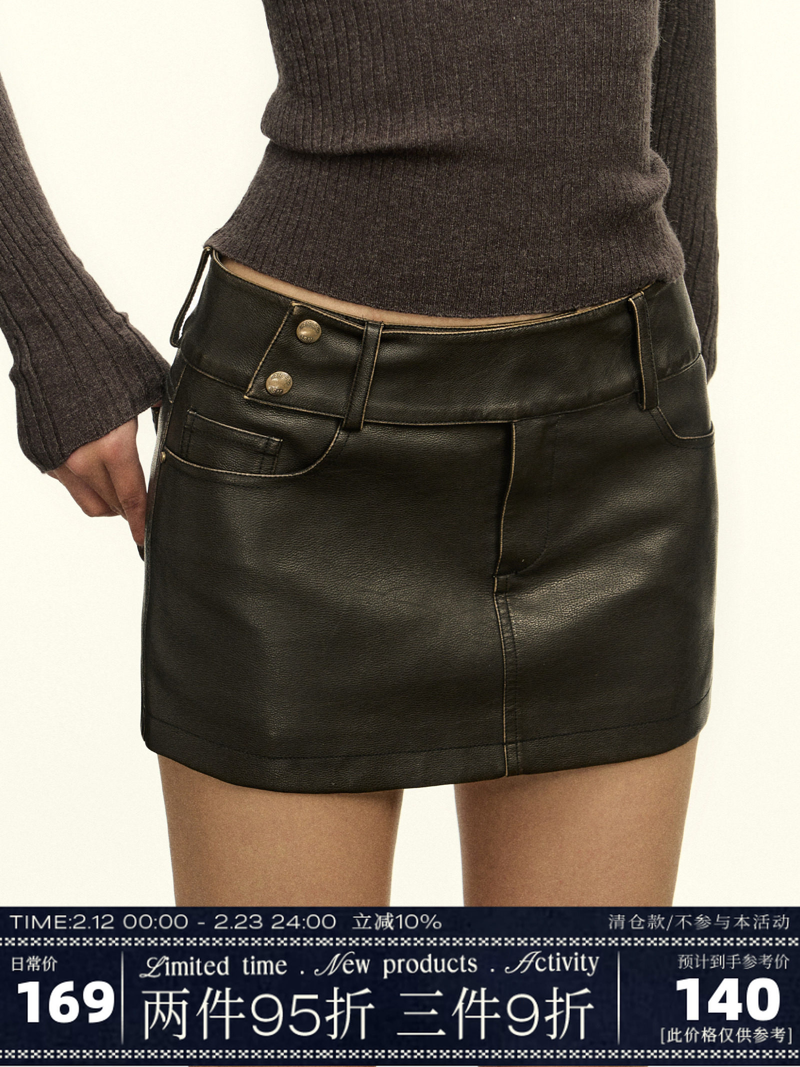 Ariseism Retro Design Skirt Women's Short Skirt 2025 Autum New Sexy Low-Waist Hip-Hugging Leather Skirt
