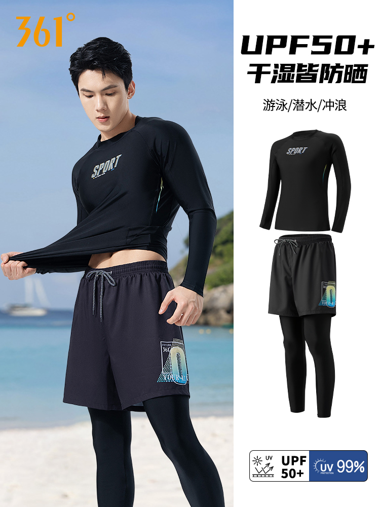 361 Sun Yang Style Men's Swimwear Set 2025 New Model for Hot Springs, Two-Piece Top and Bottom Adult Swimsuit