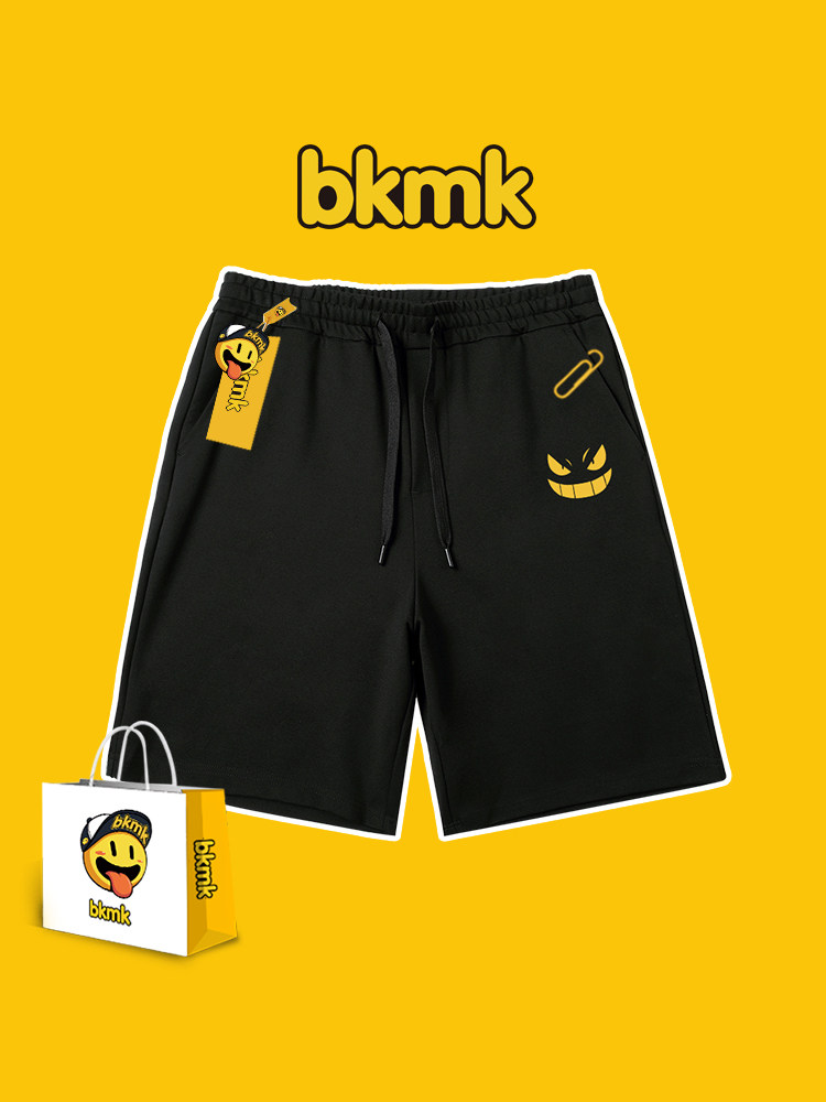 Bkmk Japanese-Style Cartoon Gengar Print Five-Point Shorts for Men, 2025 Summer Trendy Casual Versatile Couple Shorts