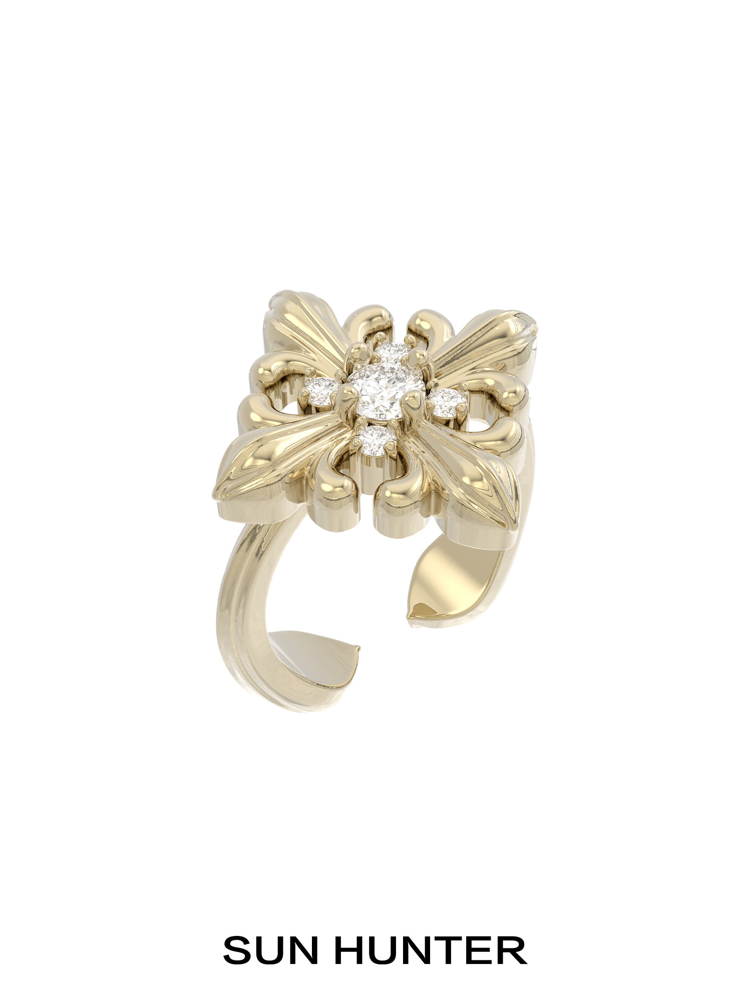 Sun Hunter Original Iris Flower Square Ring Open-Ended Vintage Light Luxury Melard Jewelry Niche for Women