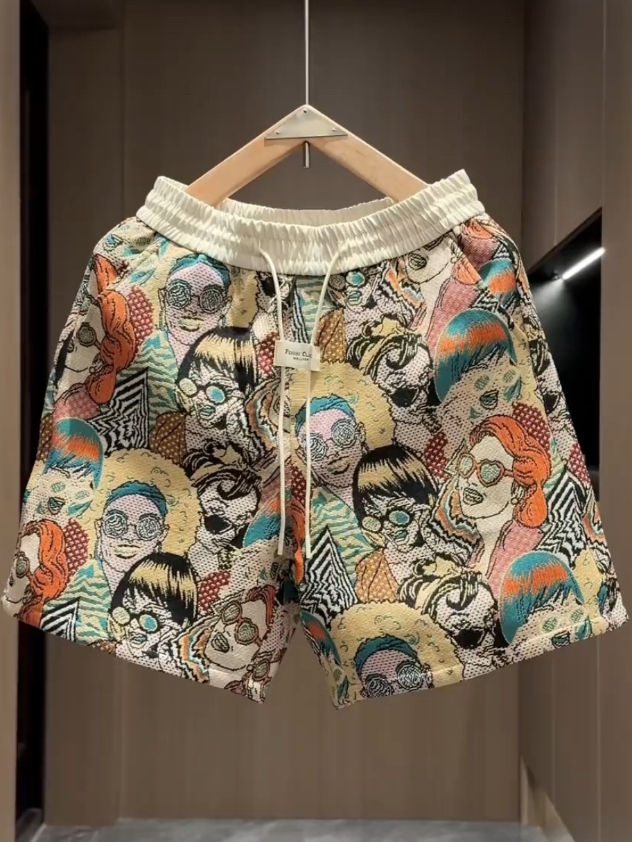 Summer New American-Style Jacquard Casual Shorts for Men, Trendy Brand Fashion Color-Blocking Loose Couple Sports Shorts