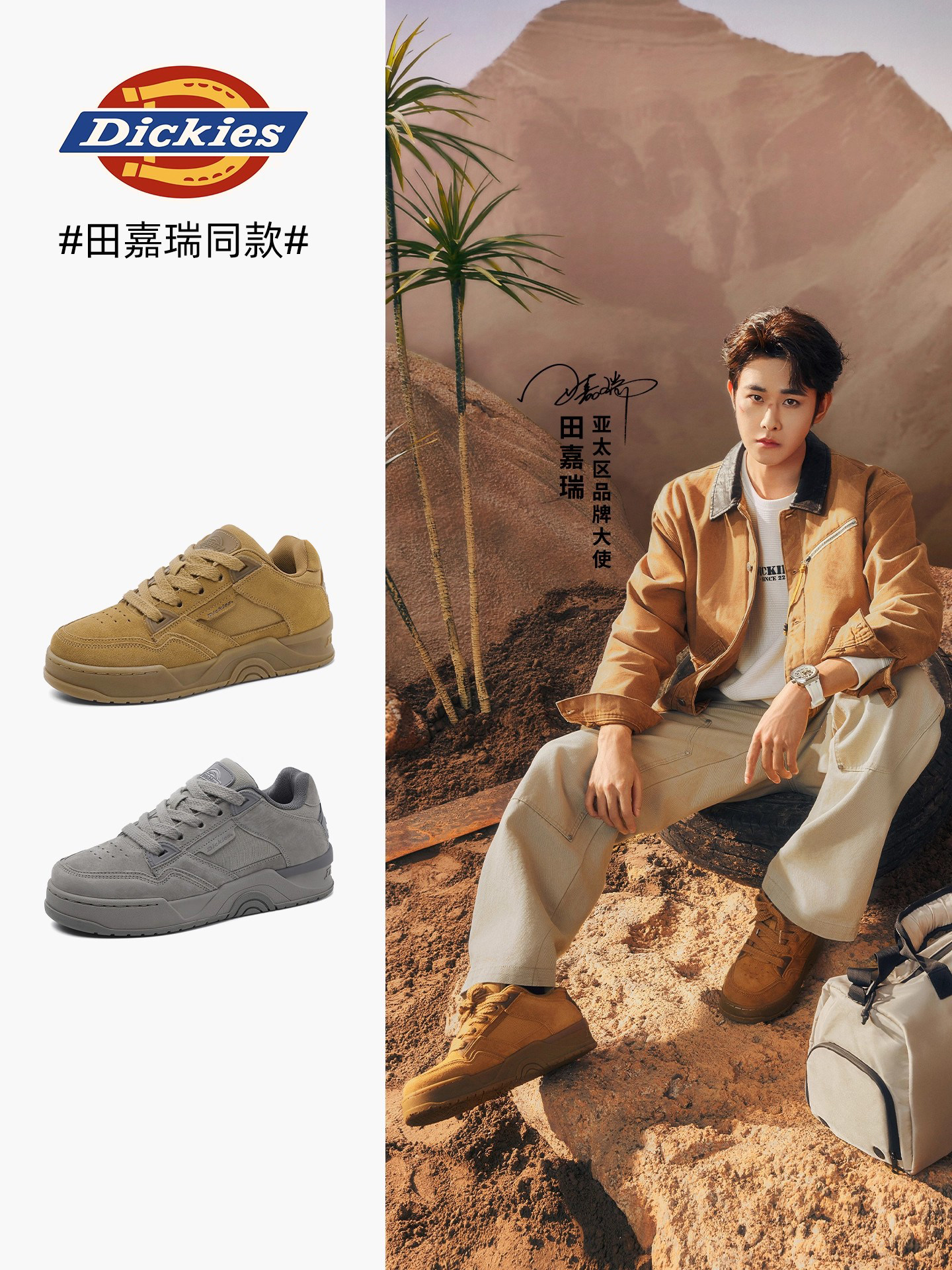 Dickies Casual Sneakers in the Same Style as Tian Jiarui, Couple's Retro-Style Shoes, Men's Trendy Brand Thick-Soled Height-Increasing Shoes