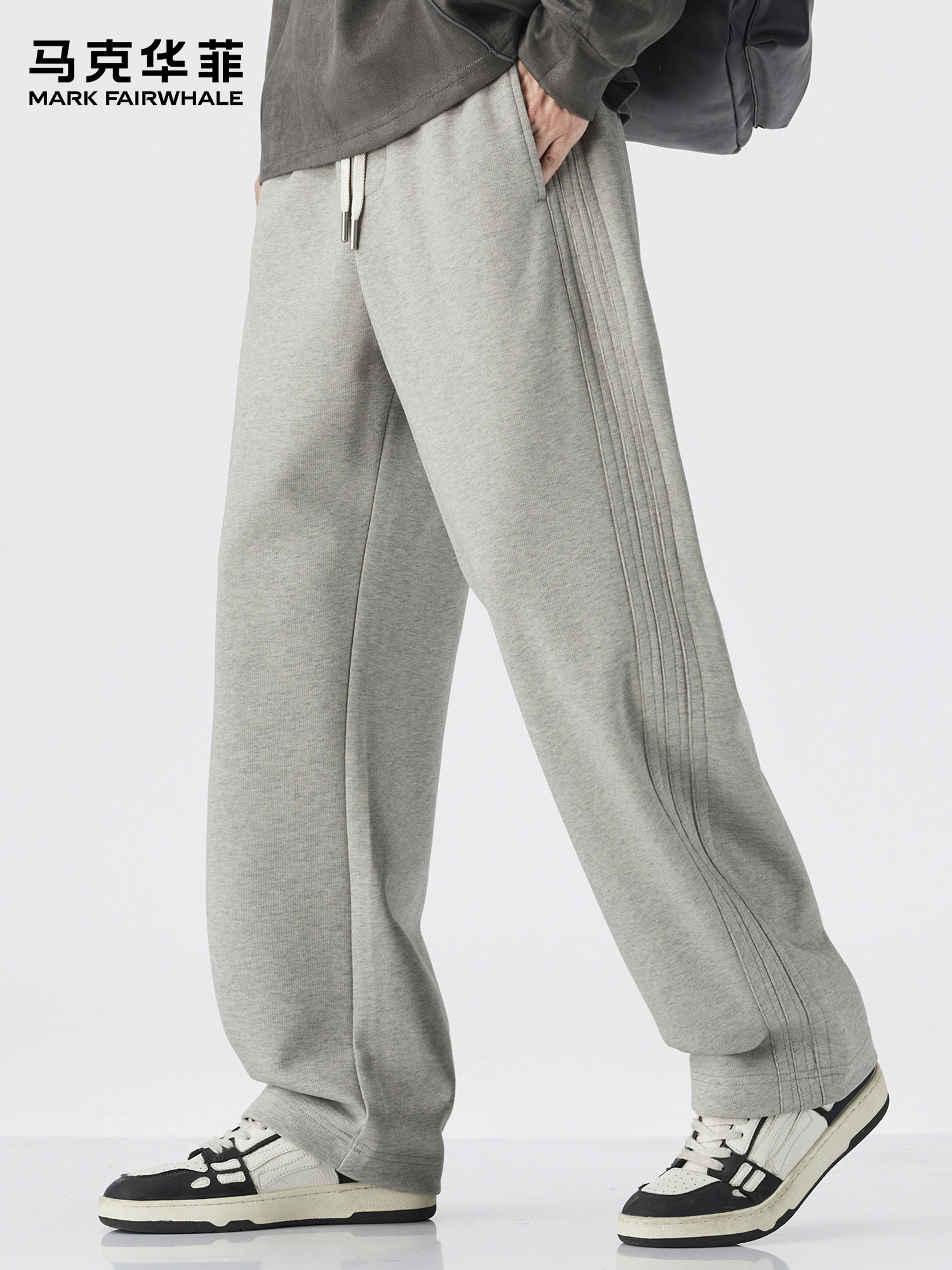 Mark Hua Fei Men's Sweatpants for Autumn and Winter, Fleece-Lined, Trendy Striped, High-End Vintage Loose Drawstring Sports Casual Pants