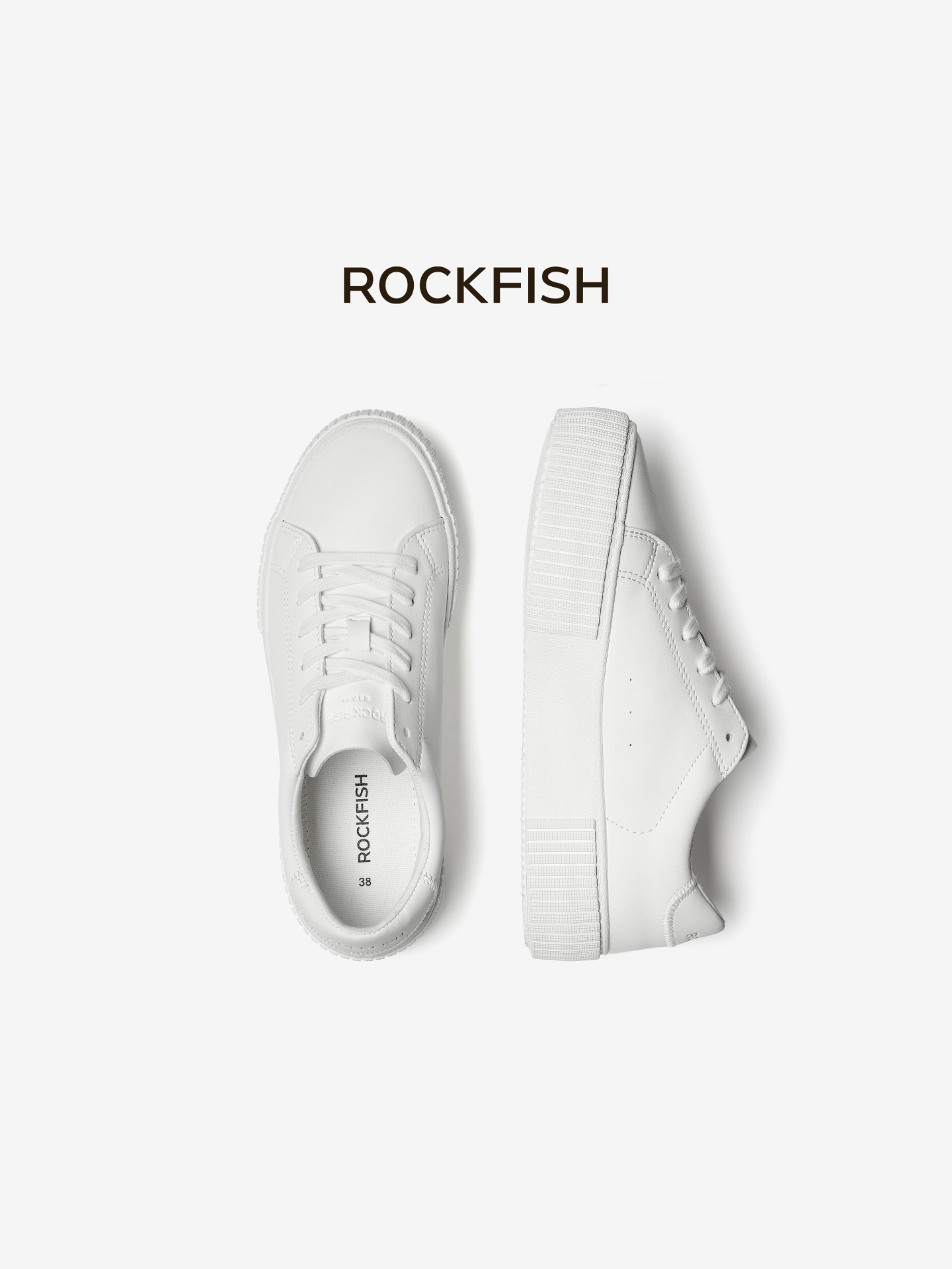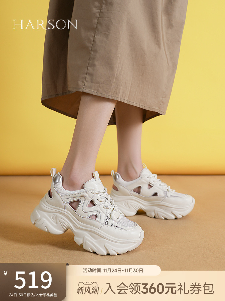 Rockfish Thick-Soled Height-Increasing Sneakers for Women 2025 New Casual Shoes Comfortable Breathable White Shoes Soft Biscuit Shoes