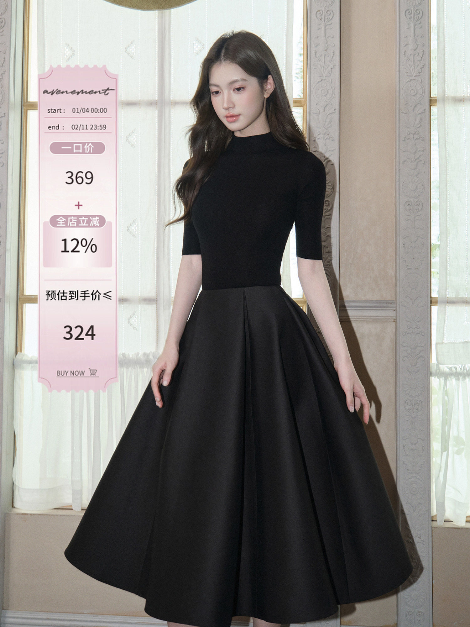 Avenement/French-Style Draped Skirt, Elegant Hepburn-Style Umbrella Skirt, A-Line Black Long Skirt, Skirt for Women in Autumn and Winter