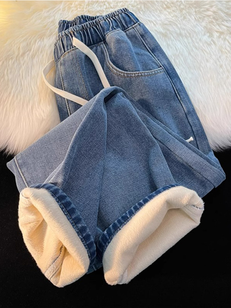 Extra Thick Wide-Leg Pants for Women, Autumn and Winter, Fleece-Lined and Thickened, 2026 New Style, Suitable for Wearing Outside in Northeast, Winter White Windproof Pants