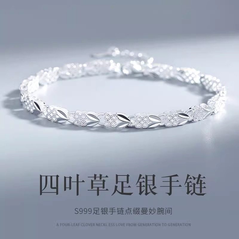 Official Genuine S999 Sterling Silver Four-Leaf Clover Bracelet for Women, New Light Luxury Niche Style, Gift for Girlfriend on Valentine's Day