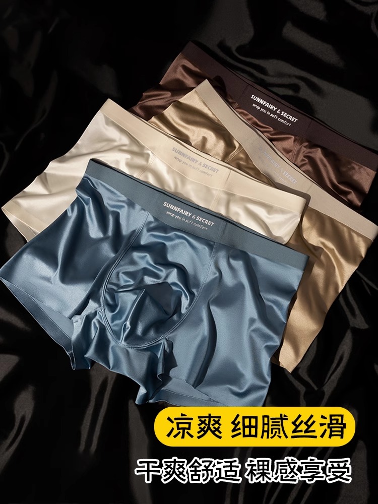 Victoria Muzi 2025 Four-Season High-End Satin Men's Ice Silk Mulberry Silk Antibacterial Comfortable Boxer Briefs