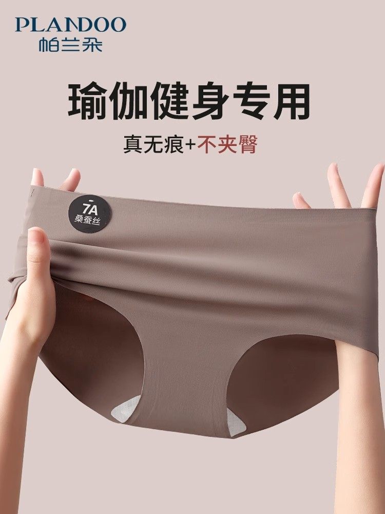 Seamless Underwear for Women, Mulberry Silk, Pure Cotton, Antibacterial, Non-Pinching, Thin Summer Yoga Sports Triangle Shorts for Girls
