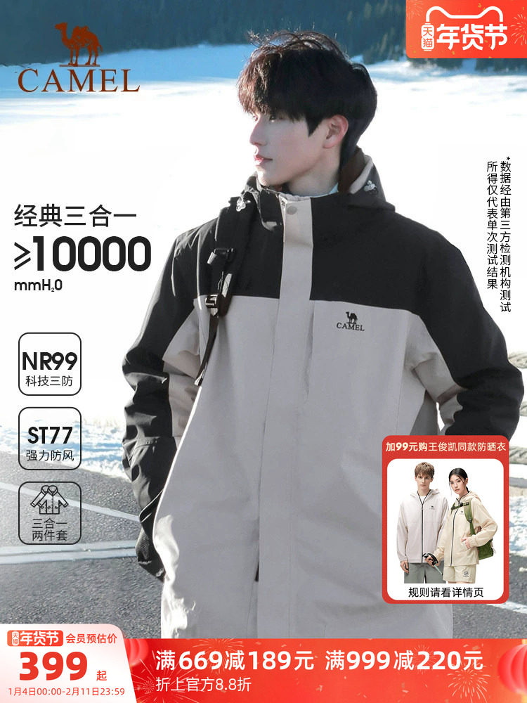 Camel Outdoor Rain God Jacket Men's 3-in-1 down Jacket Winter Waterproof Coat Women's Triple Protection Travel Ski Jacket