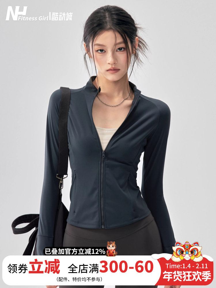 Fitness Girl Stand-Up Collar Yoga Jacket Autumn Slim Fit Zipper Sports Top Slimming Pilates Running Long Sleeve New