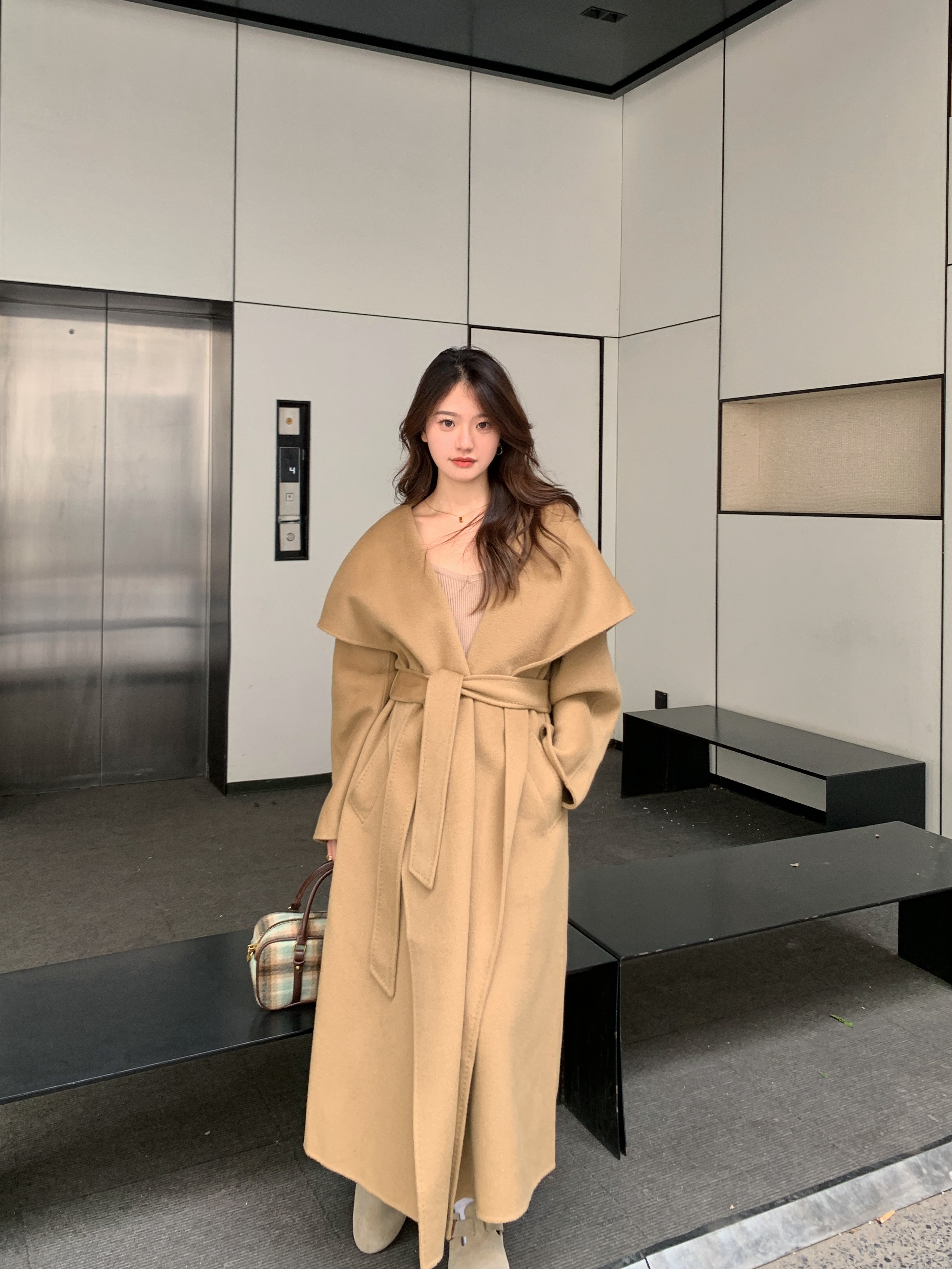 2025 Autumn New Lazy Loose Camel Color Large Lapel Double-Sided Wool Coat Mid-Length Cashmere Jacket m Brand