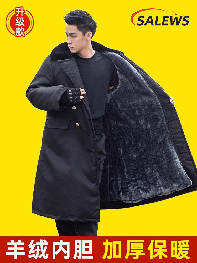 German Military Overcoat for Men, Winter Fleece-Lined, Thickened, Warm, Cold-Proof Cotton Jacket, Old-Style Green Coat, Labor Protection Cotton-Padded Jacket