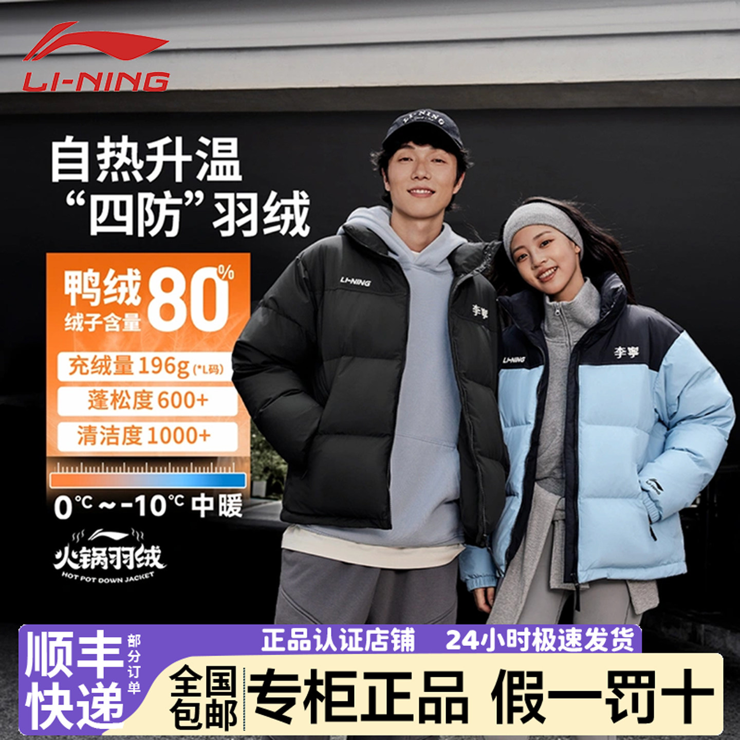 Li-Ning Hot Pot down Jacket for Men and Women, Short Style, Windproof, Waterproof, Casual, Fashionable, Versatile, Warm down Jacket Aymv431