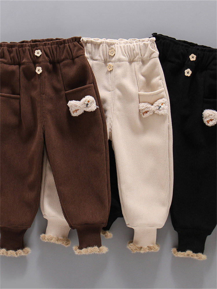Baby Girl Fleece-Lined Thick Pants 2025 Winter New Stylish Sweatpants for Outerwear Little Girl Corduroy Casual Pants