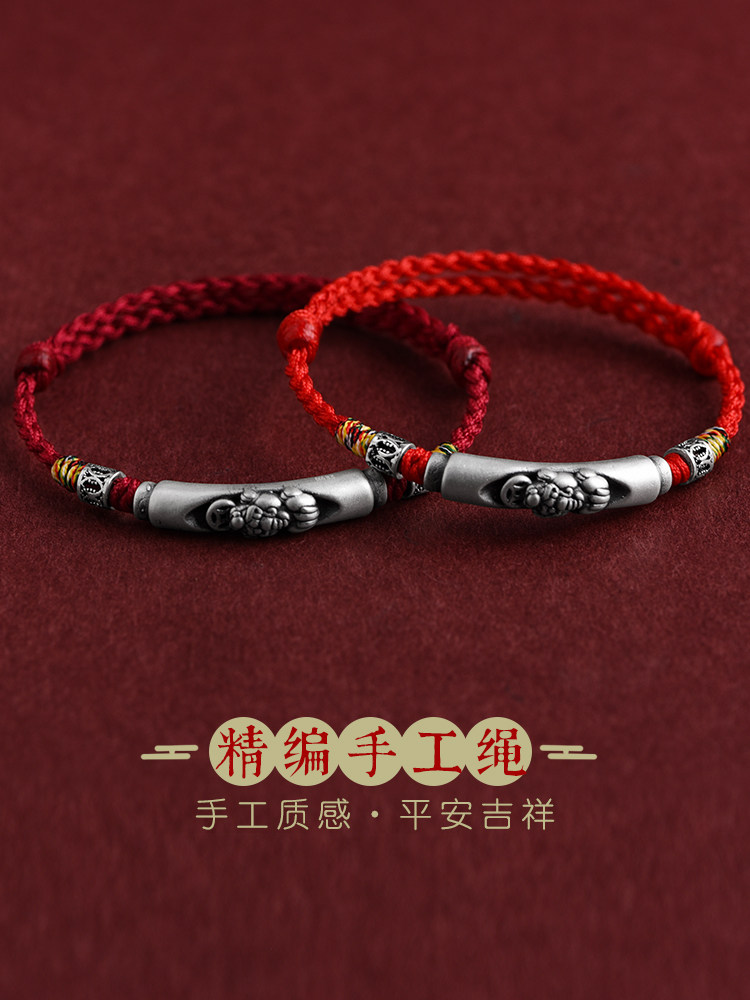 999 Pure Silver Lucky Pixiu Red String Bracelet for Men and Women, Sterling Silver Fortune Bead, Birth Year Wealth, Hand-Woven Bracelet