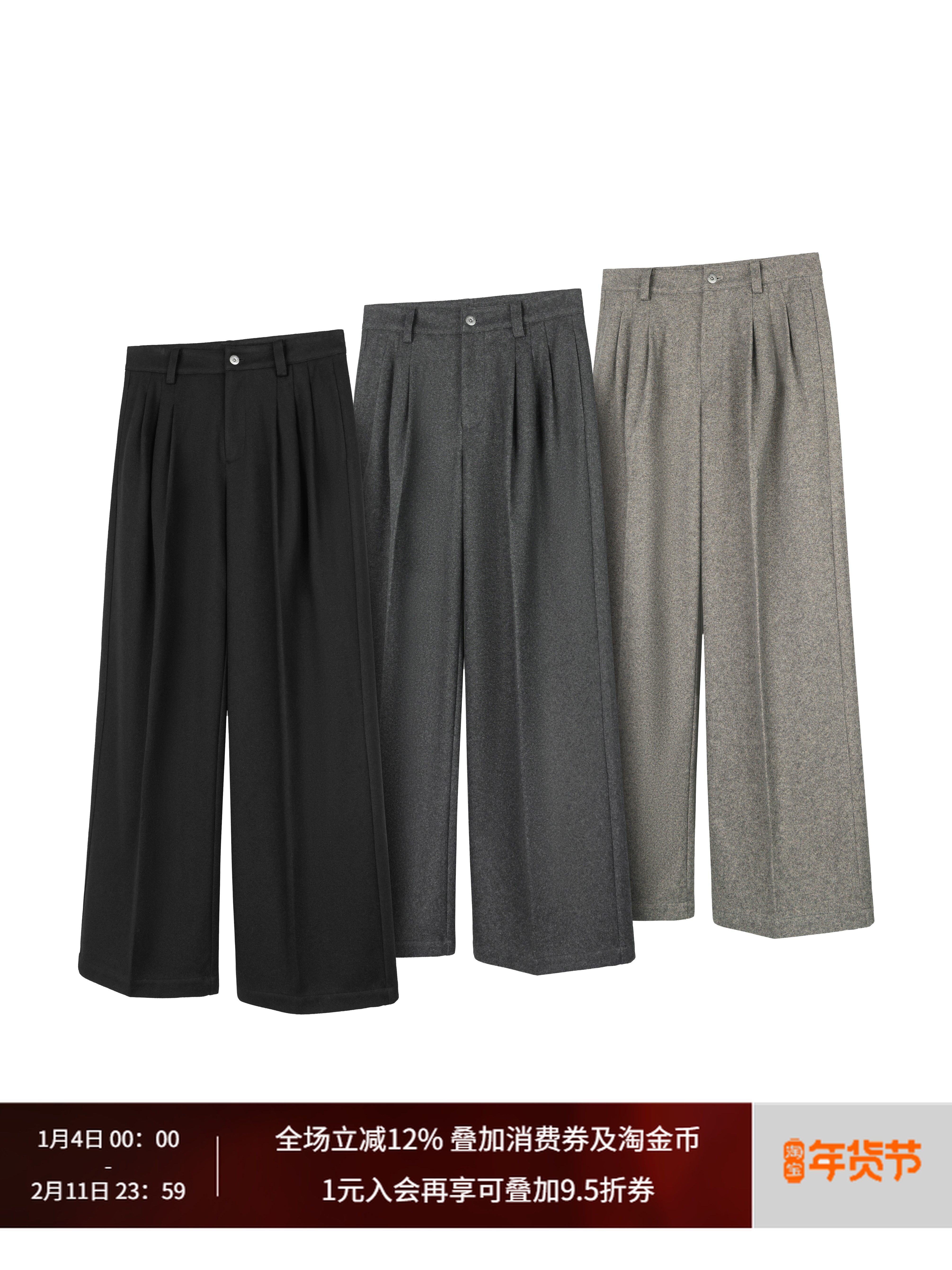 Deserto 700g Heavyweight Self-Heating Woolen Three-Pleat Ironed A-Line Drape Autumn and Winter Dress Pants Casual Pants