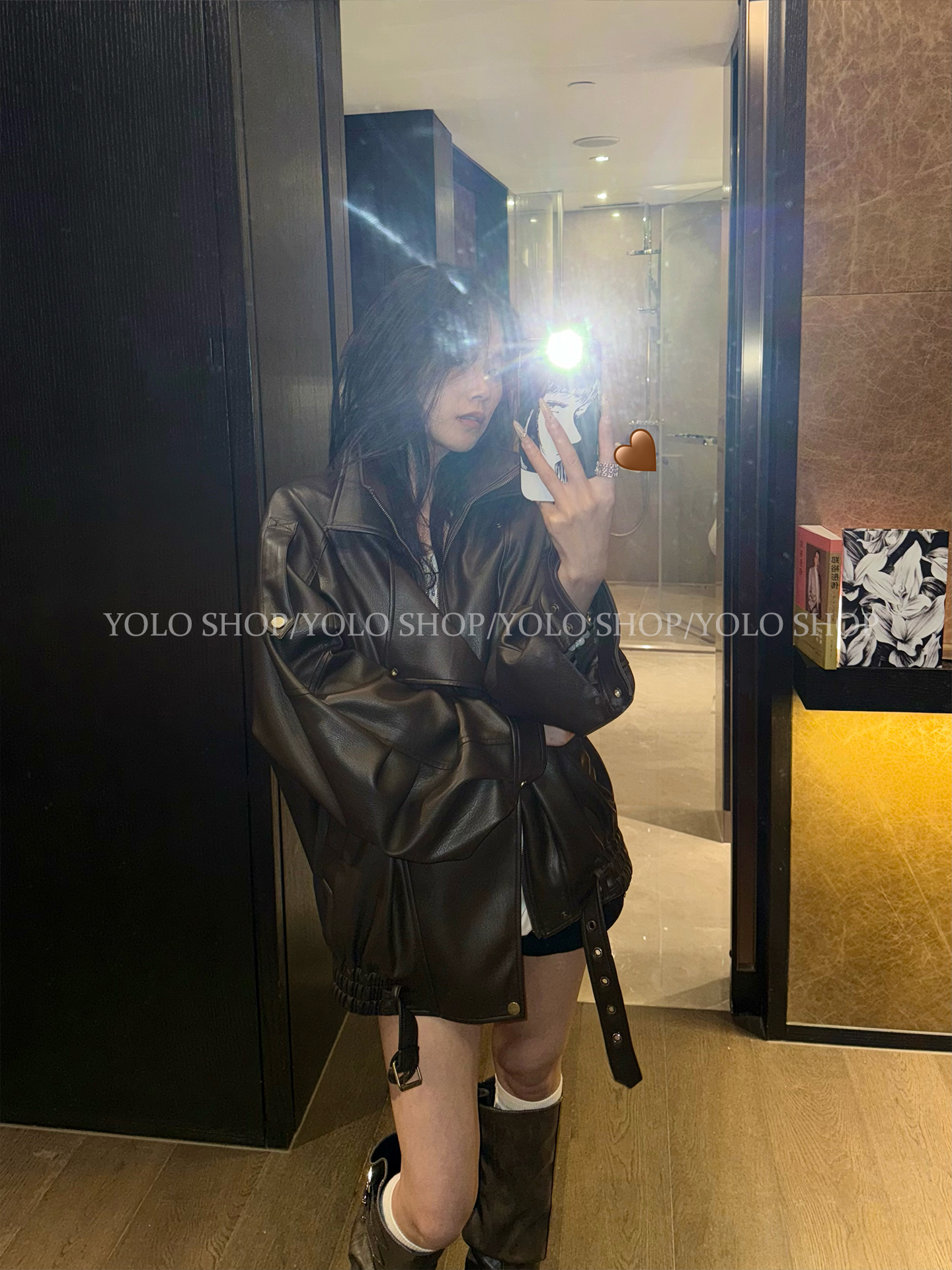 High-End and Elegant Black Leather Jacket for Women, New Loose-Fitting and Slimming Retro Versatile Biker Jacket for Spring and Autumn