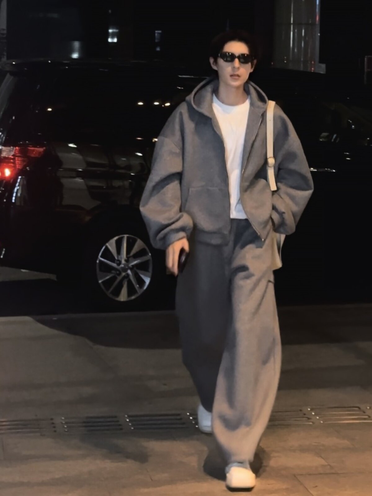 Natural Gray American-Style Sweatpants for Women, Autumn and Winter Fleece-Lined, Street Dance Wear, Pleated, Loose, Casual Long Pants