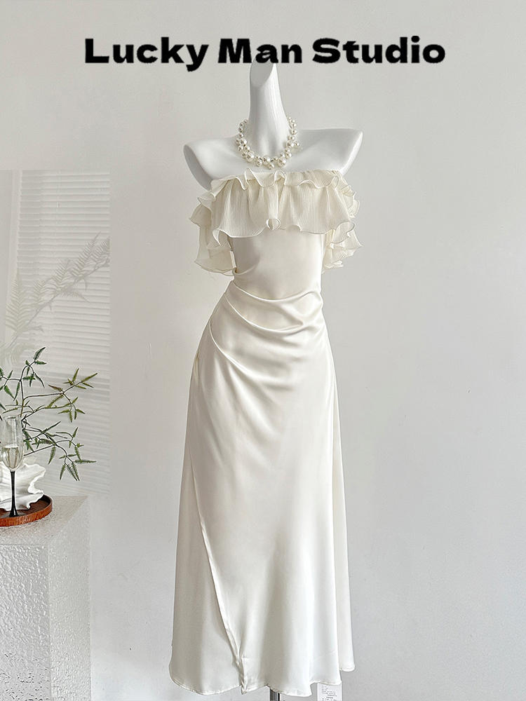 Lin Yan'Er V-Neck Knitted Dress for Women, Autumn and Winter, Slim Fit, Elegant Inner Layer, Base Sweater, Bodycon Fishtail Skirt, Spring