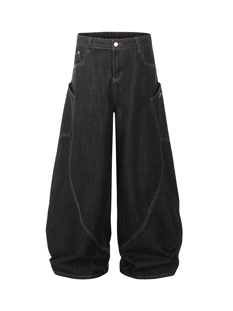 Joinboy Denim Raw Denim Silhouette Large Pocket Knife-Cut Pants Wide-Leg Streetwear American-Style Jeans for Men Hip-Hop