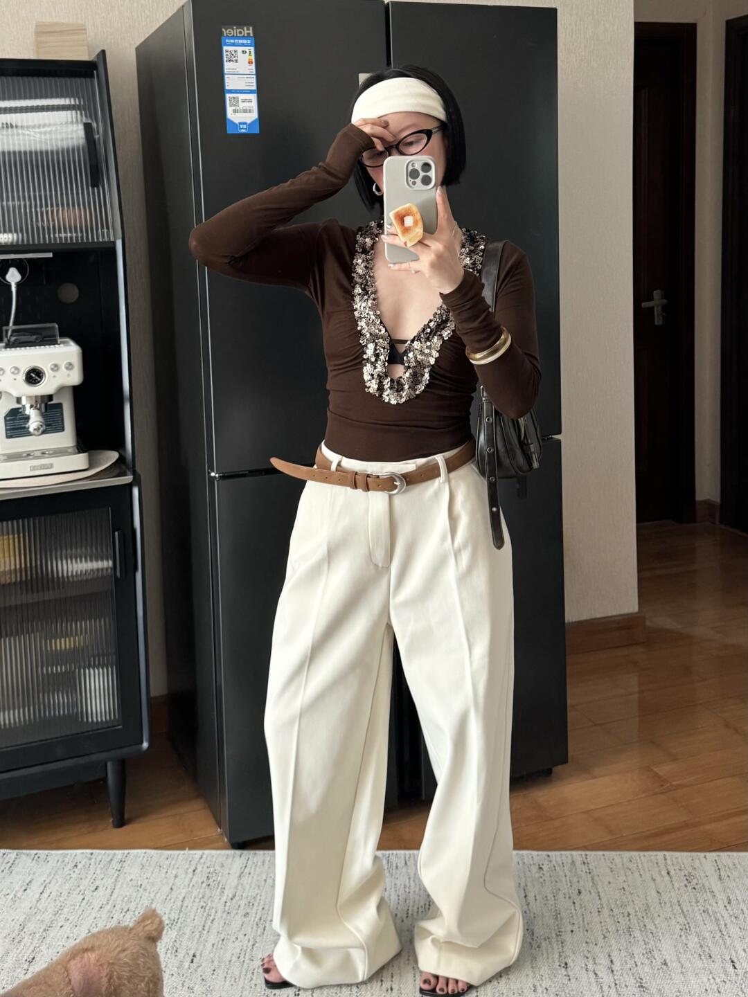 Gray American-Style Sweatpants for Women, New Spring and Autumn Models, Korean Version, Straight-Leg, Patchwork, Casual, Versatile, Fleece-Lined Sports Pants