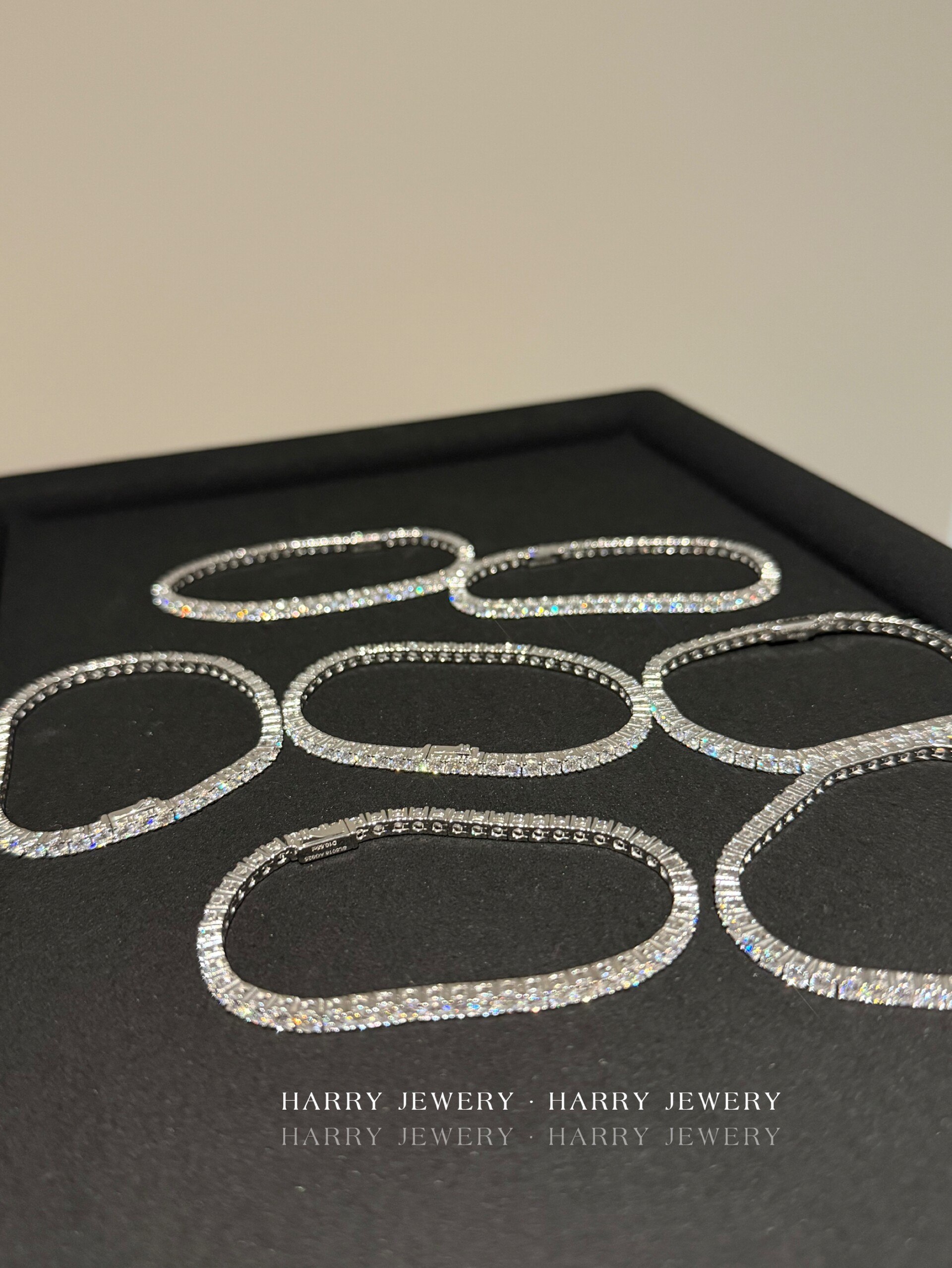「Tennis」 Tennis Full Diamond Bracelet Silver Technology Diamond 40 Points ins Casual Silver Horn Daily Work