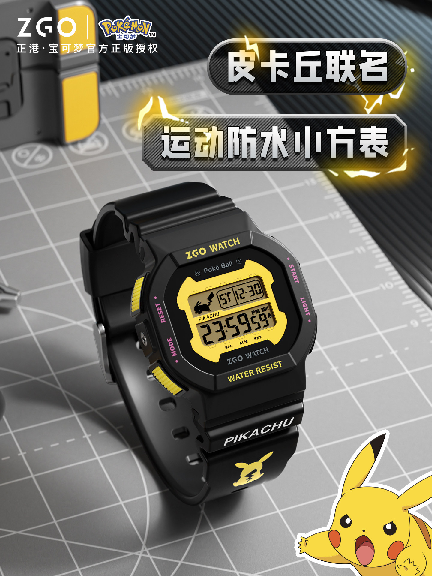 Genuine Pokémon Pikachu Co-Branded Watch for Boys, Elementary School Students Only, Time-Telling Only, Teenagers, Children, Boys, Electronic