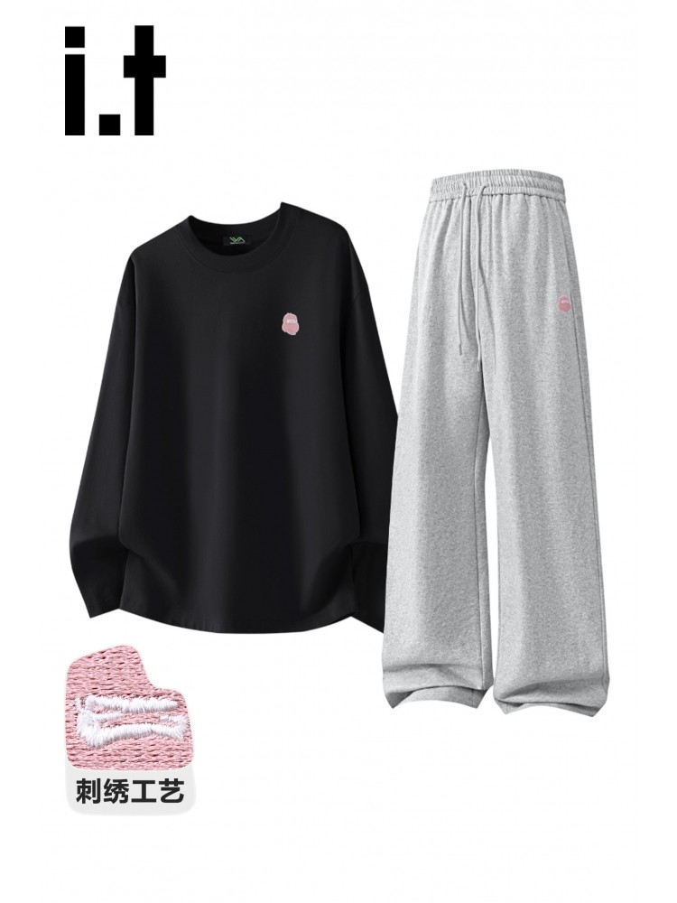 Fornines Embroidered Heavyweight Terry Sweatpants Unisex Trendy Casual Pants Spring and Autumn Straight Wide-Leg Trousers