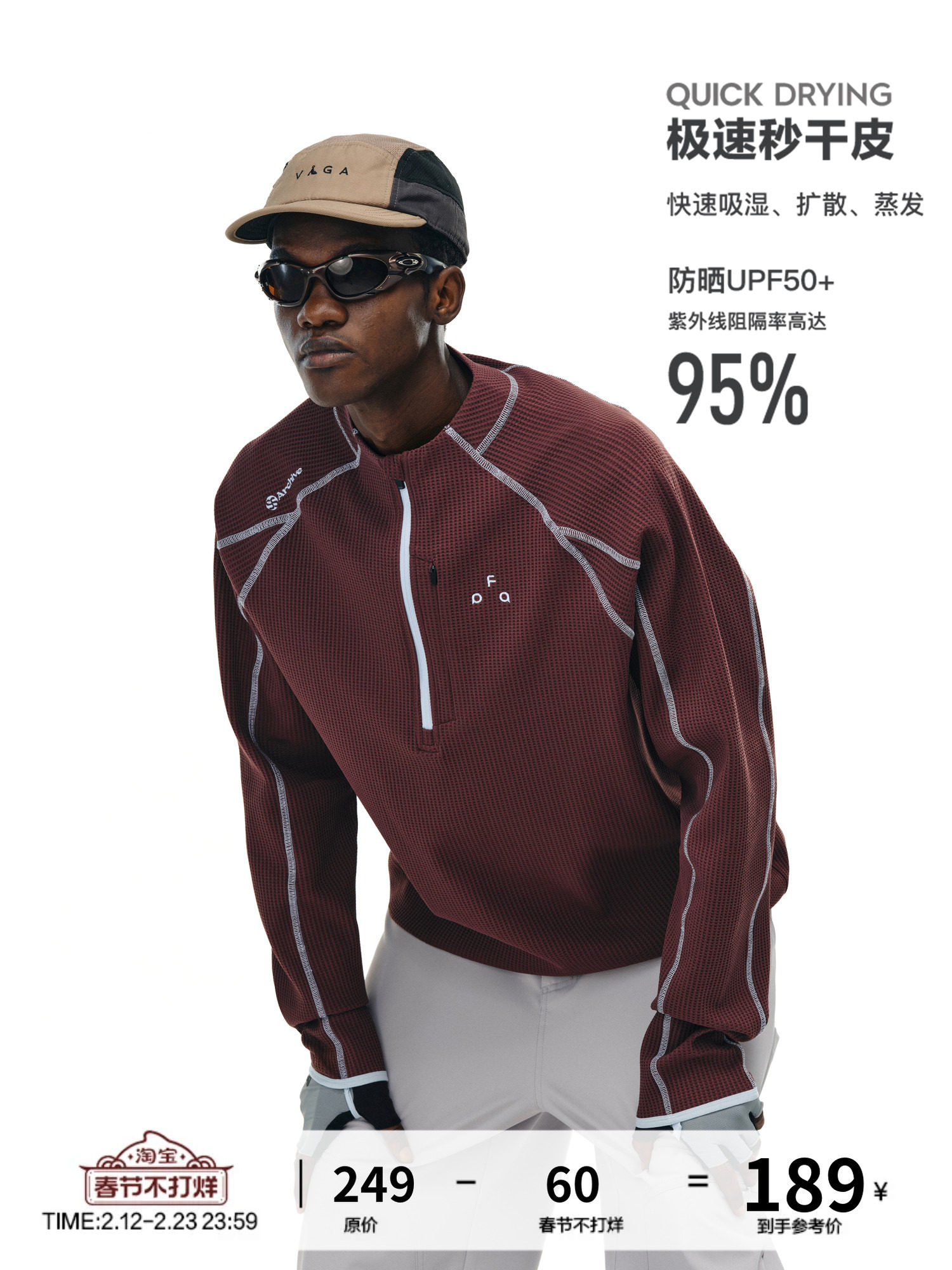 Fpa Quick-Drying Upf50+ Sun Protection Sports Long-Sleeve Spring and Autumn National Trend Half-Zip Half-High Collar Loose Couple T-Shirt