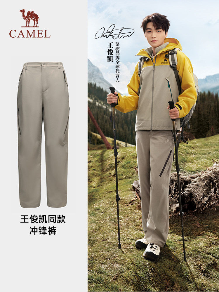 Camel Outdoor Softshell Pants for Men and Women, Autumn and Winter, Windproof, Waterproof, Breathable, Wear-Resistant, Tear-Resistant, Hiking and Mountaineering Long Pants