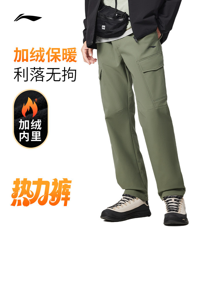 Li-Ning Sports Pants Fitness Series Men's Autumn and Winter Soft Straight-Leg Fleece-Lined Thermal Pants Sports Pants