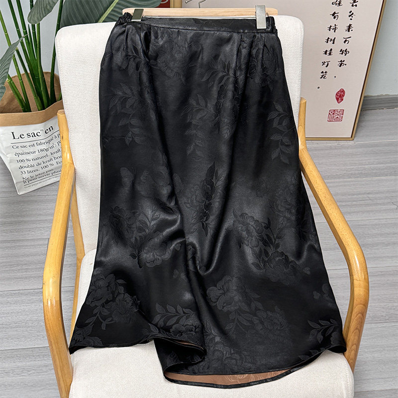 Pre-Release New Model Xiangyun Silk 100% Mulberry Silk 50% Shunde Old Material Black Ancient Style Peony Loose Flared Skirt Half Skirt