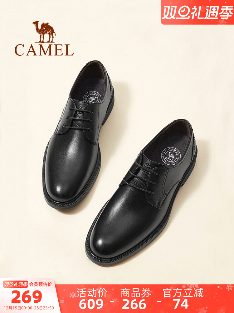 Camel Men's Leather Shoes 2025 Autumn New Formal Business Shoes Genuine Leather Height-Increasing Wedding Groom Derby Shoes
