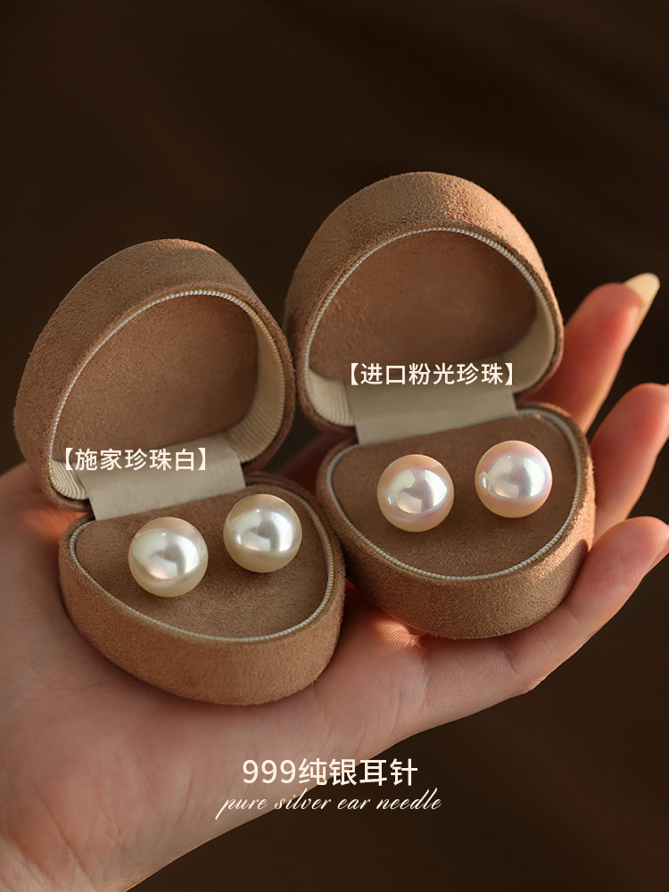 【Xiangnan】999 Pure Silver Shijia Pearl Earrings, Light Luxury High-End 2026 New Popular Niche Earrings for Women