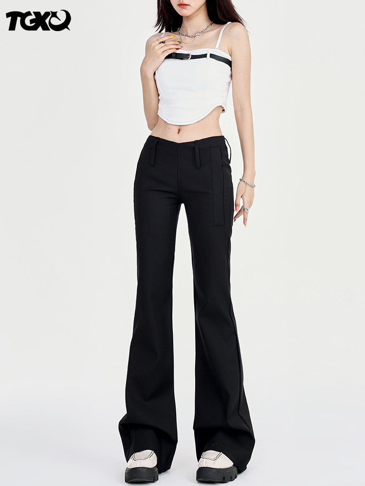 Tgxq American-Style Low-Waisted Flared Pants for Women 2025 New Casual Slim-Fit Petite Suit Black Bell-Bottom Pants