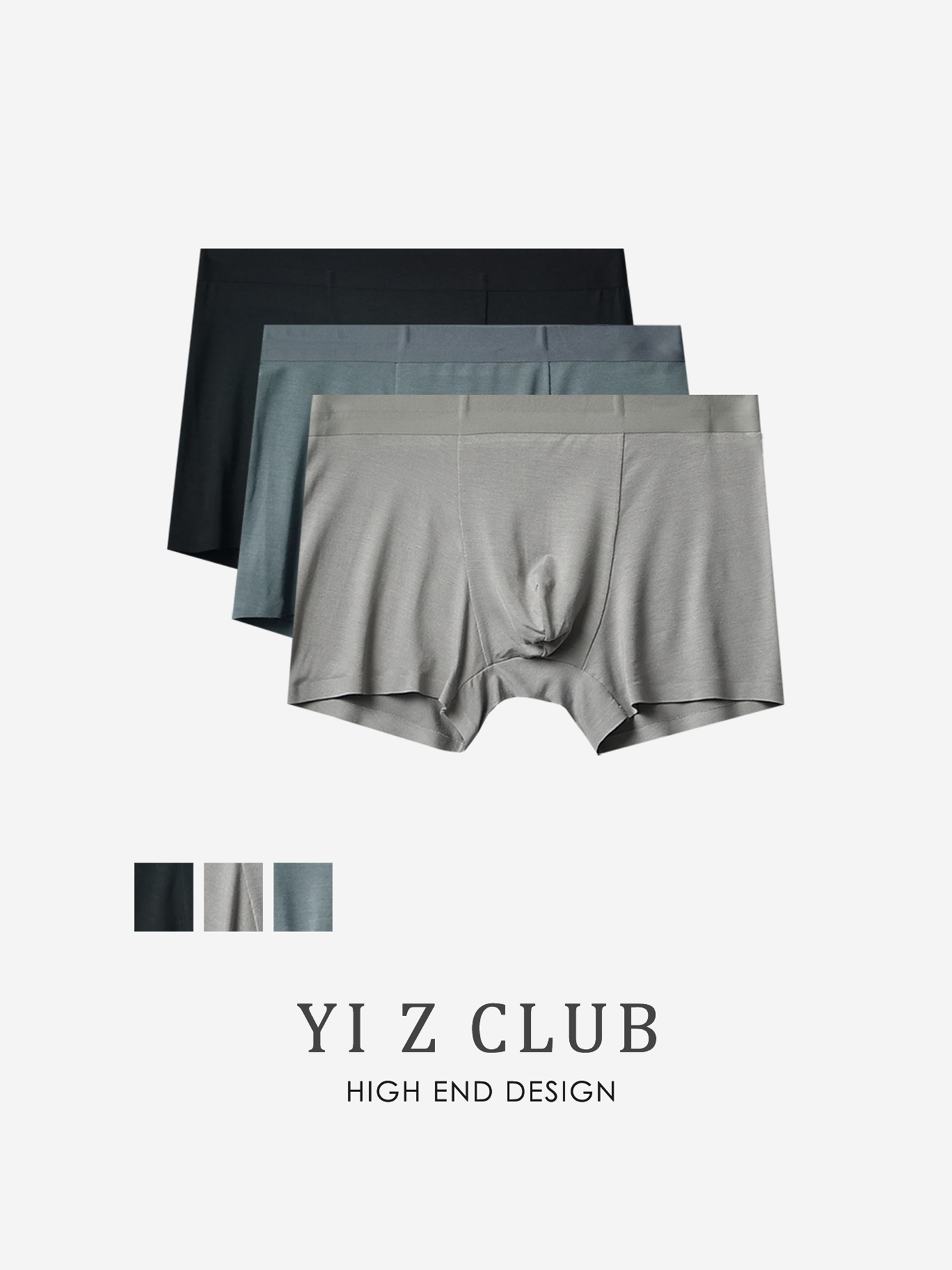 Yi Z Club Skin-Friendly Breathable Seamless Mulberry Silk Front Panel Men's Boxer Briefs 1 Set of 3 Pieces 0.17