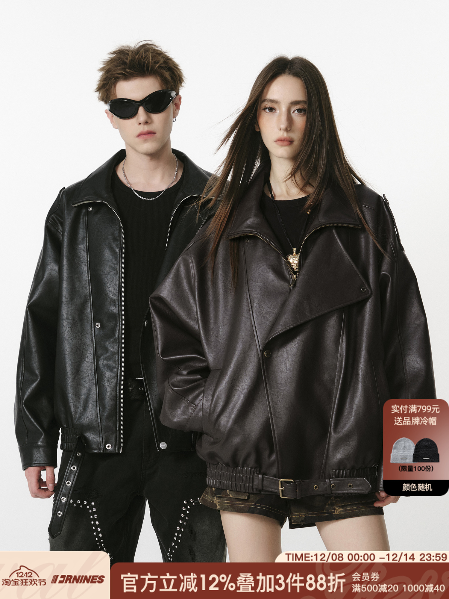 Heyma Qizuo American-Style Lapel Leather Short Jacket, Retro Spring and Autumn Style, Unisex Casual Melard Motorcycle Jacket